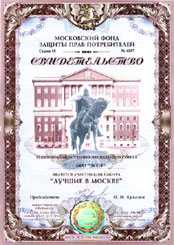 Свидетельство участника смотра «Лучшие в Москве» Московского Фонда защиты прав потребителей. -