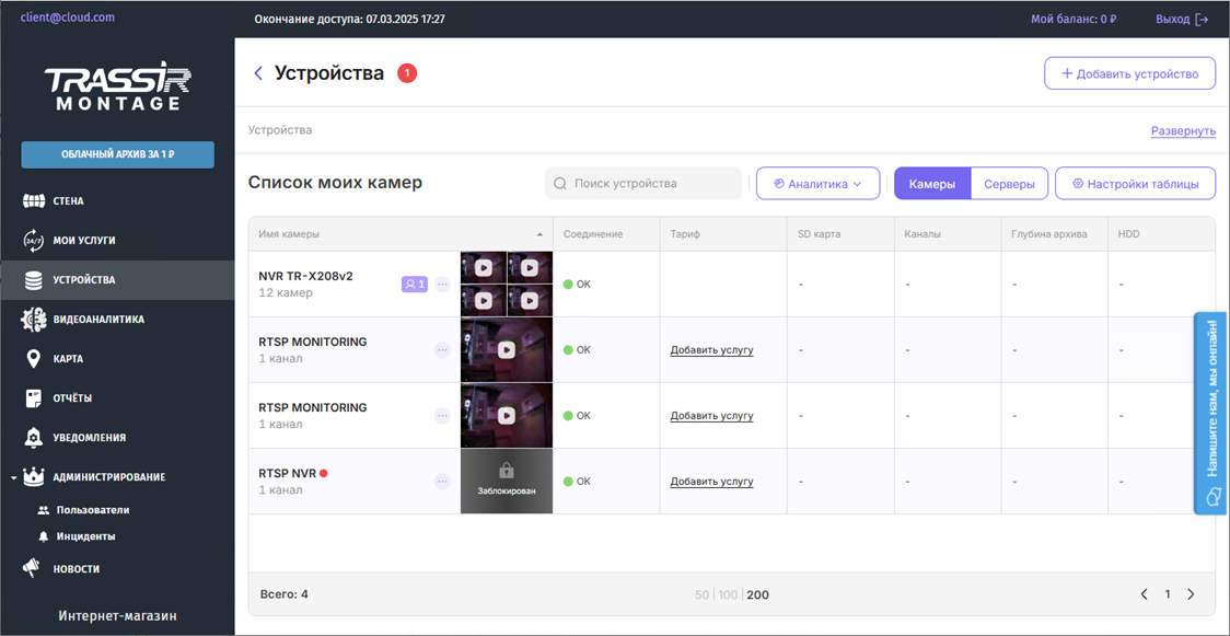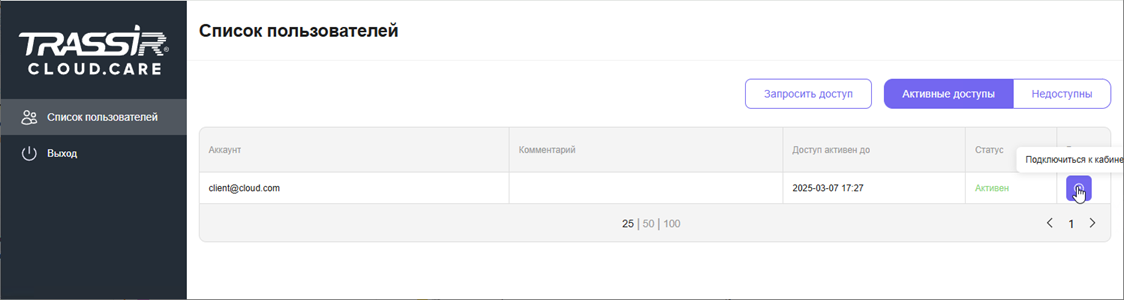 После получения доступа к учетной записи клиента в TRASSIR Cloud вы можете перейти в нее для настройки кабинета и оборудования, подключенного к нему.