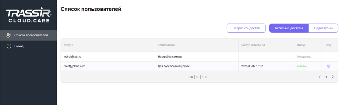 - Перейти на вкладку Активные доступы, где в таблице пользователей отображаются учетные записи со статусом доступа Активен или Ожидание....