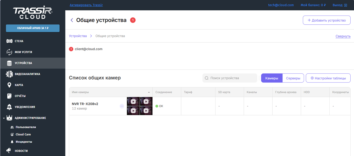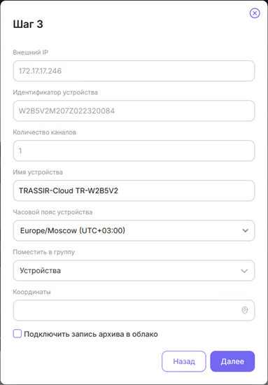 Если вкладки TRASSIR Cloud нет, то вам необходимо обновить программное обеспечение устройства. Подробную инструкцию и последнюю версию программного