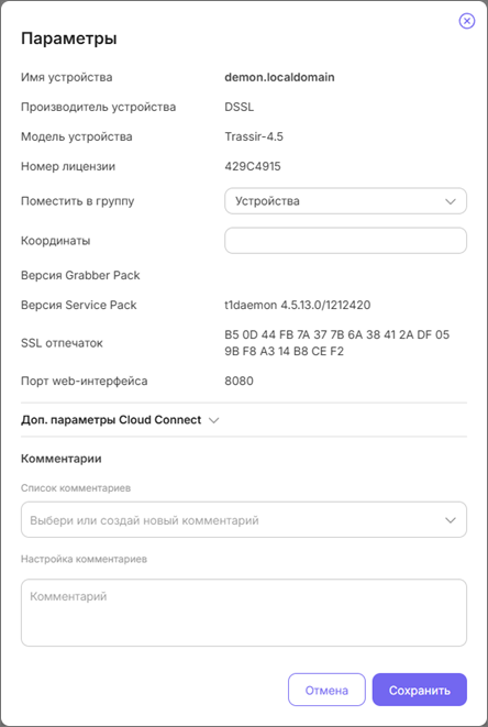 - Поместить в группу - название группы, в которой будет находиться устройство.