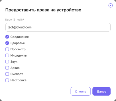 При добавлении пользователей можно управлять правами их доступа к устройствам: