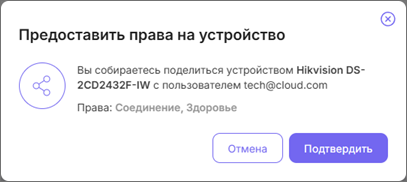 Пользователю, незарегистрированному в TRASSIR Cloud, придет запрос на регистрацию. После регистрации и авторизации устройство будет доступно в личном кабинете пользователя в списке Общие устройства.