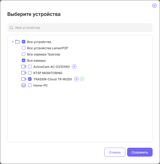 Для получения сообщений о наличии человека в кадре, камера должна поддерживать аппаратную детекцию человека (список камер вы найдете на нашем сайте). В окне добавления устройств такие камеры отмечены иконкой