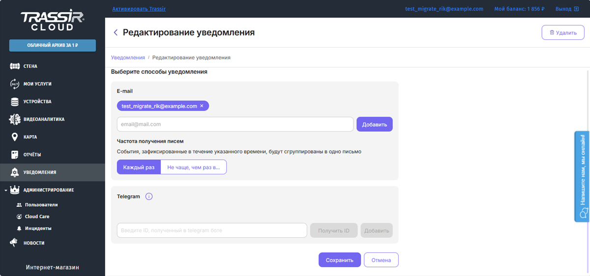 Для учетных записей с подпиской Server Pro/Enterprise доступны уведомления в Telegram.