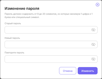 Чтобы сменить пароль, нажмите кнопку Изменение пароля. В открывшемся окне введите старый и новый пароль