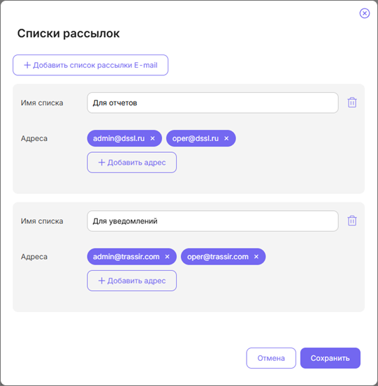 Облако предоставляет широкие возможности для мониторинга вашей системы видеонаблюдения. Списки рассылок помогут определить адресатов, получающих уведомления или отчеты о работе устройств.
