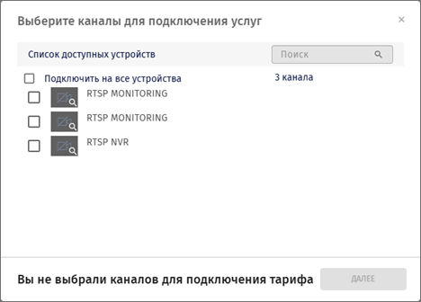 Отметьте флагами каналы для подключения услуги. Нажмите Далее.