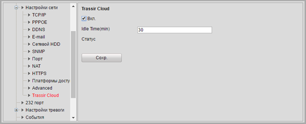 Если вкладки TRASSIR Cloud нет, то вам необходимо обновить программное обеспечение устройства. Подробную инструкцию и последнюю версию программного обеспечения вы найдете на нашем сайте.