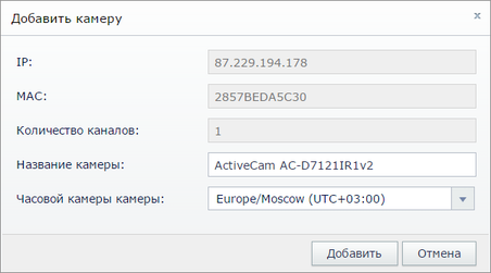 Добавляемая камера должна быть в списке поддерживаемого оборудования.