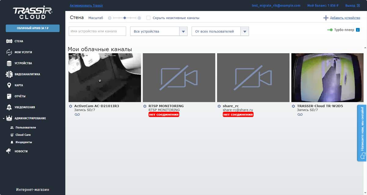 - Cloud Care - предоставить доступ партнерам TRASSIR для удаленной настройки устройств и услуг через TRASSIR Cloud Care.