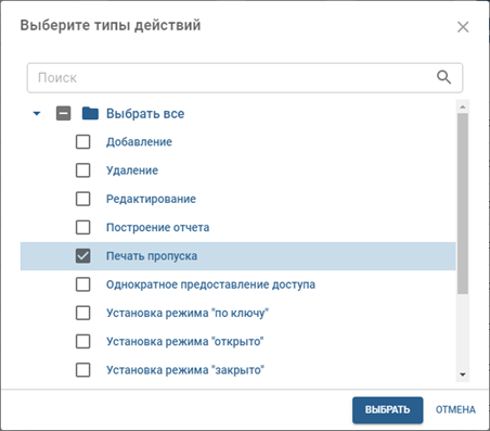 Данный раздел предоставляет пользователю удобный способ просмотра всех действий, совершенных в различных разделах TRASSIR СКУД, включая аудит действий оператора над точками доступа, редактора макета пропусков и печать пропусков.