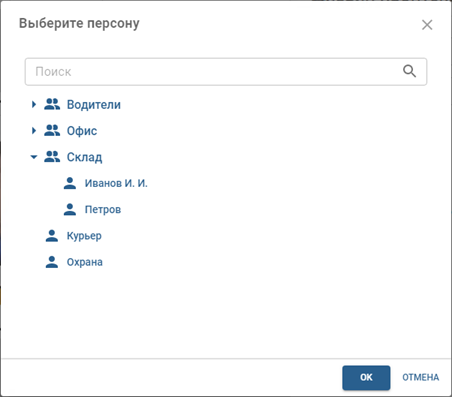 Персона для предварительного просмотра - выберите персону, данные которой будут отображаться на создаваемом макете пропуска.