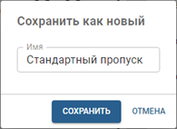 Сохранить макет пропуска как новый - при нажатии на кнопку появится окно для ввода нового имени макета.