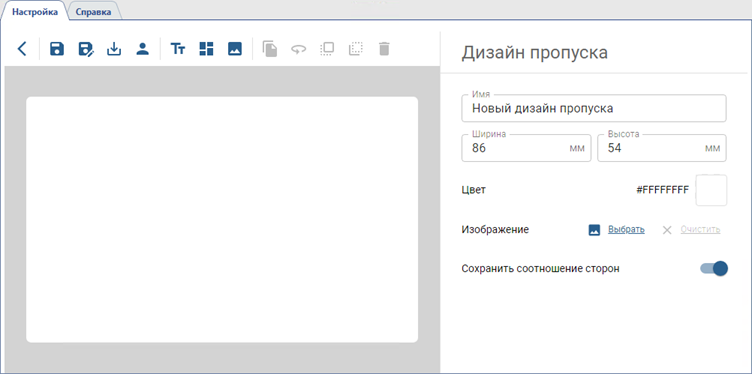 Нажав на кнопку Добавить откроется редактор макетов пропусков: