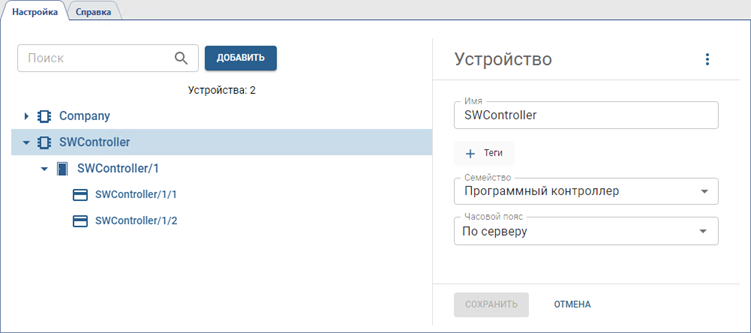 Добавьте Теги, чтобы упростить поиск контроллера среди всех добавленных устройств (см. раздел Теги).