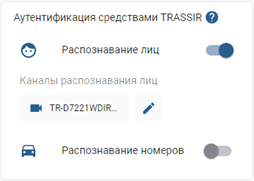 Если для аутентификации будет использоваться модуль AutoTRASSIR, то включите Распознавание номеров, а в поле Канал укажите канал видео, который будет использоваться для аутентификации.