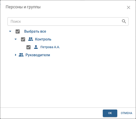 Добавьте группы персон или отдельные персоны, которым будет назначен данный уровень доступа.
