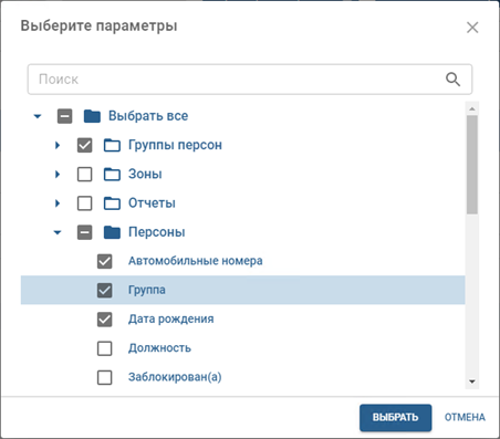 Критерий поиска Персоны позволяет выполнять поиск действий, произведенных для удаленных персон. Для просмотра этой информации выберите персон из группы Удаленные персоны.