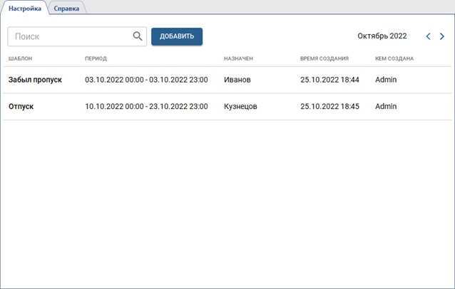 Данный раздел позволяет создавать и редактировать документы, подтверждающие отсутствие сотрудника на рабочем месте. Чтобы открыть раздел, перейдите в Модули -> СКУД -> Оправдательные документы.