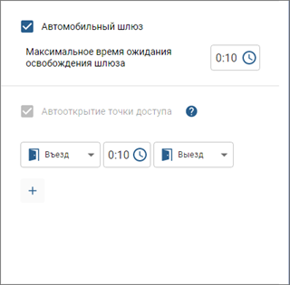 Если нужно создать правило для проезда транспорта, установите флаг Автомобильный шлюз. При этом автоматически активируется опция Автооткрытие точки доступа.