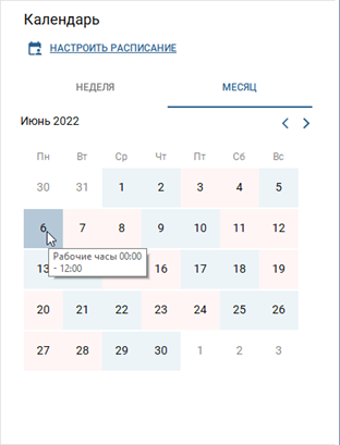 После создания рабочего графика его расписание можно просмотреть как на неделю, так и на месяц.