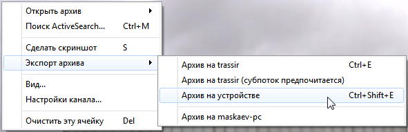 - В контекстном меню выберите пункт Экспорт архива... и выберите вариант архива, который собираетесь экспортировать: