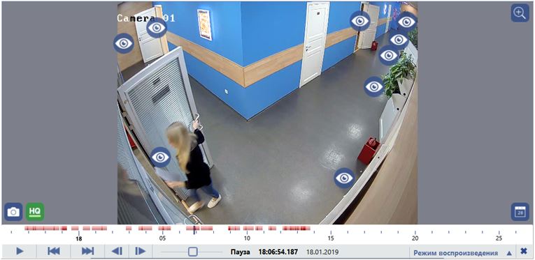 Во время просмотра архива оператор, при помощи настроенных телепортов, может переключаться из архива, снятого одной камерой