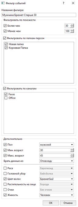- Фильтровать по каналам - показывать лица, обнаруженные на определенном видеоканале.