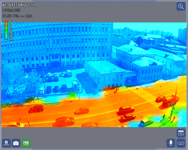 Тепловые карты удобно использовать на тех каналах, где сам факт срабатывания детектора движения является тревожным событием. Данный режим отображения будет особенно полезен в случае, когда оператор видеонаблюдения одновременно осуществляет мониторинг большого количества камер. Тепловая карта поможет сфокусировать его внимание в нужной области экрана.