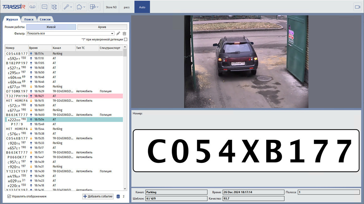 Если в вашей системе используется модуль AutoTRASSIR/AutoPass, то вы можете просматривать на одном экране: