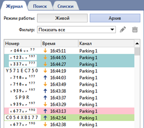 Если распознанный номер будет обнаружен в одном из трех списков, то в журнале AutoTRASSIR/AutoPass он будет выделен соответствующим цветом: