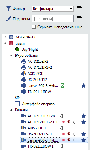 В дереве можно отображать только избранные объекты. Любой объект сервера может быть отмечен как избранный. Для этого, наведите
