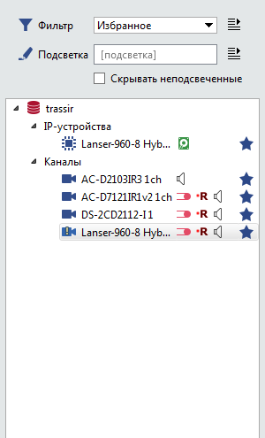 Чтобы отобразить только избранные объекты - выберите фильтр Избранное.