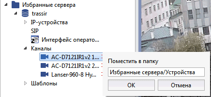 Задача: Поместить устройства в подпапку "устройства". Для этого кликните на группе нужных объектов правой клавишей мыши и в выпадающем контекстном меню выберите пункт Папка.... Откроется окно переместить в папку, содержащее значение "Избранные сервера". Допишите к нему через знак "/" название подпапки - "Устройства".