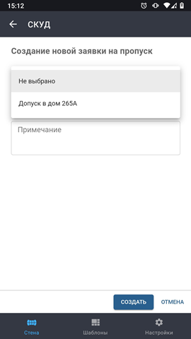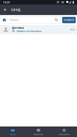 Откройте в мобильном приложении Модули -> СКУД и нажмите на кнопку Заявки на пропуск.