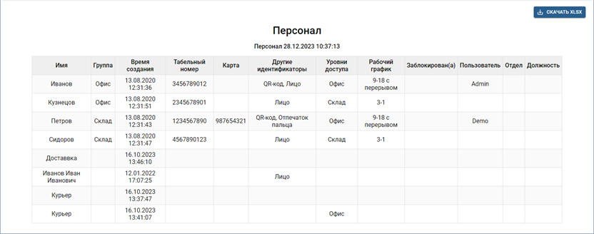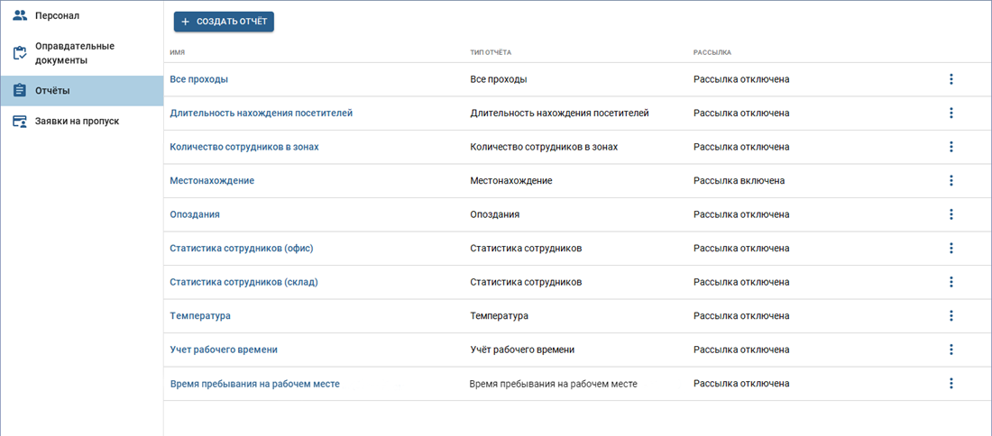 TRASSIR СКУД позволяет создавать следующие виды отчетов: