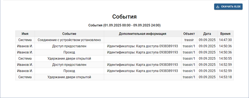 События - отчет о всех событиях, возникающих в работе TRASSIR СКУД.