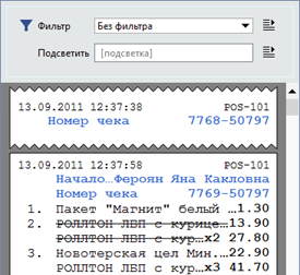 Если количество терминалов велико, то это может существенно затруднить работу оператора. Для сокращения количества выводимых чеков можно использовать один или несколько фильтров, что позволит отображать только те чеки, которые требуют привлечения внимания оператора. Создание набора таких фильтров позволит реагировать на типовые нарушения и схемы воровства кассиров, а также оперативно разрешать конфликтные ситуации.