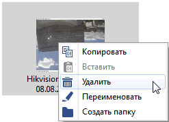 Правый клик мыши на файле вызывает контекстное меню. Пункты меню дублируют кнопки копирования, вставки и удаления.