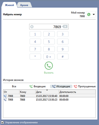 Если установлен флаг Управлять отображением, то при выборе звонка, в шаблоне будет отображаться видеоархив канала, ассоциированного с данным номером.