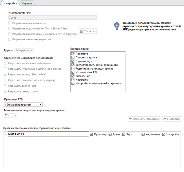 Подробнее о настройках прав пользователей читайте в "Руководстве администратора".