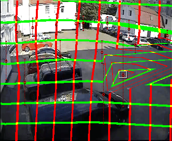 После завершения настройки соответствия обзорной и поворотной камеры Вы можете сделать проверку на грубые ошибки нажав кнопку Показать тестовую угловую сетку. Резкие изломы линий на сетке свидетельствуют о допущенной грубой ошибке.