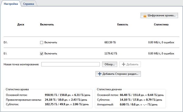 В окне Настройки клиента -> Архив вы можете определить, какие из дисков и в каком режиме могут быть использованы для архива.