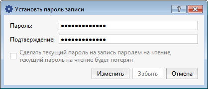 Кнопку Забыть пароли вы можете использовать если вам необходимо отключить функцию шифрования архива. В этом случае весь зашифрованный архив станет недоступным, а новый начнет сохранятся в незашифрованном виде. Для получения доступа к ранее сохраненному зашифрованному архиву введите пароль чтения или заново активируйте шифрование архива, используя тот же самый пароль.