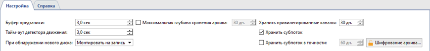 - Максимальная глубина хранения архива - позволяет установить глубину архива для всех каналов.