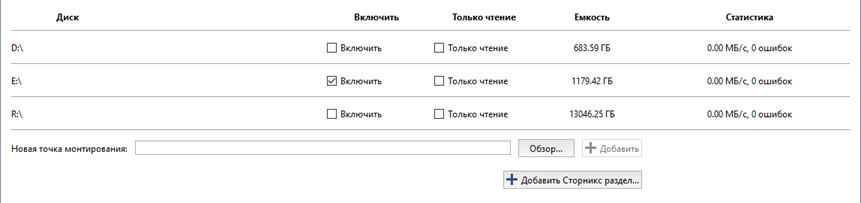 - Монтировать только на чтение - на диск не будет производиться запись, но если он содержит архивные файлы, они будут доступны в виде Потерянных каналов.
