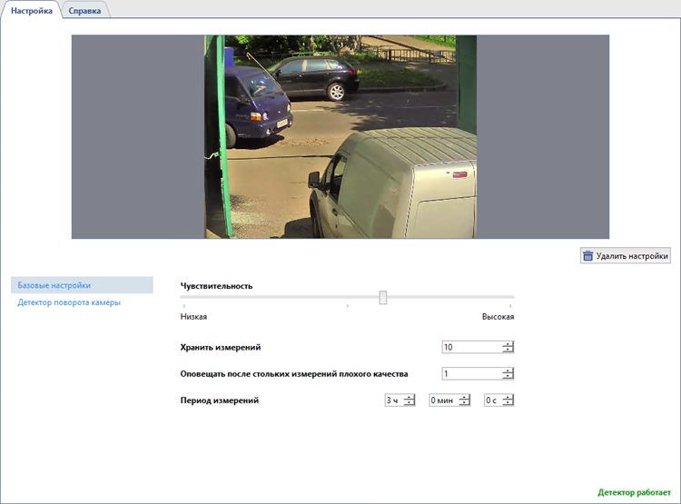 - Определить Период измерений - интервал времени, через который детектор будет проводить измерения качества изображения.