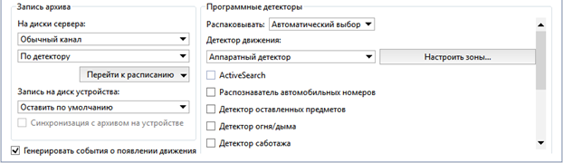 Обратите внимание, что не все устройства имеют встроенный аппаратный детектор движения. Настройку аппаратного детектора устройства необходимо проводить исключительно в настройках сервера, а не через веб-интерфейс устройства.