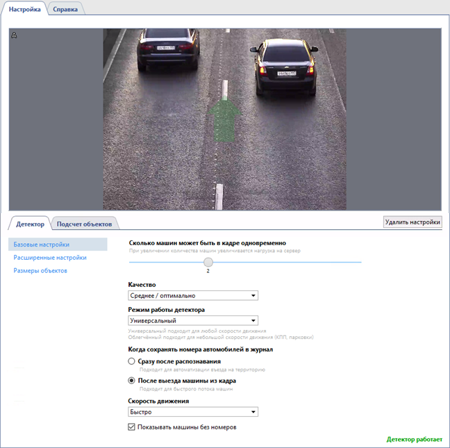 На вкладке Детектор в базовых настройках детектора необходимо настроить следующие параметры: